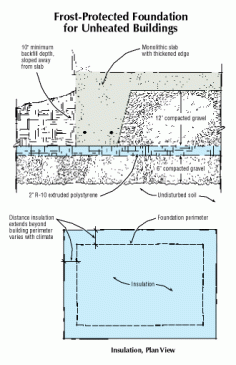 How ToBuilding a Frost-Protected Foundation for an Unheated BuildingIn a cold climate, combining rigid foam insulation with a well-compacted, free-draining substrate is the key to avoiding heaving damage to a slab foundation.3 MIN READ