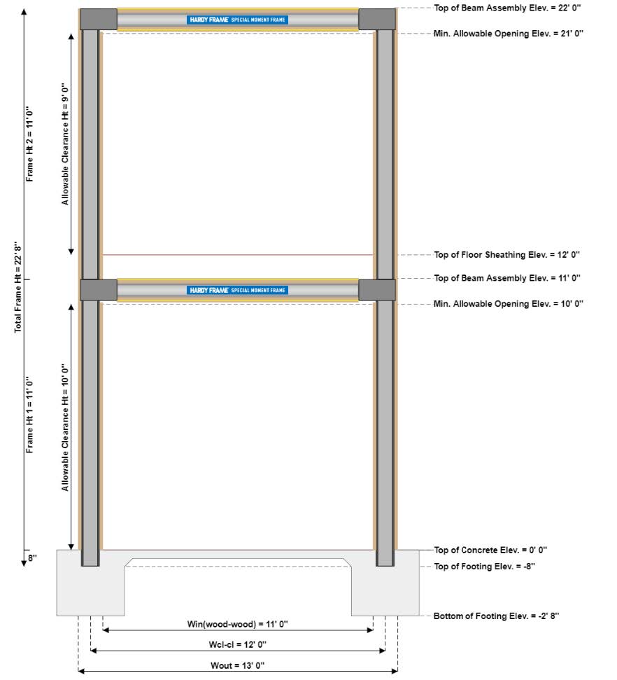 The Hardy Frame Special Moment Frame Design Manager is highly interactive and replaces tedious manual input forms. As the user enters dimensions, the Hardy Frame Special Moment Frame is instantly drawn to scale. The input is continuously checked for consistency and accuracy, preventing costly specification errors and delays. Heights, inside and outside widths, and other important dimensions are displayed, including clearance reductions for nailers and SidePlates®.