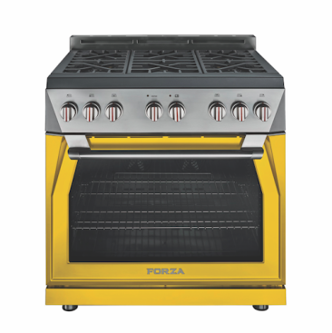 Forza is an Italian manufacturer of premium pro-style cooking appliances. Ranges feature the Infinito Grate System, which reportedly offers the industry’s largest usable cooking surface for the range size. The range tops have 20,000 Btu dual-flame sealed burners and 12,000 Btu single burners that range from simmer to sear for precise heat control. The Forza 30- and 36-inch pro-style gas ranges are offered in stainless steel or six bold color options. Shown: 36-inch gas range in yellow. forzacucina.com