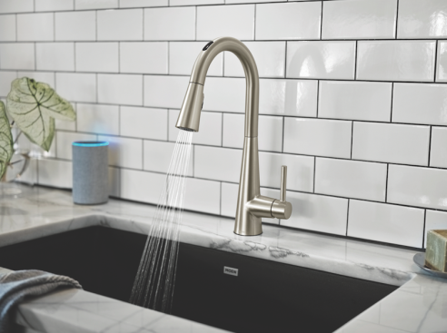 The U by Moen Smart Faucet is the only voice-activated kitchen faucet on the commercial market to offer voice and hands-free activation regardless of the faucet’s manual handle position. Voice service and hands-free control will start or stop the water flow, dispensing the desired temperature and amount, whether the faucet handle is in the open or closed position, and despite manual temperature selection with the handle. moen.com