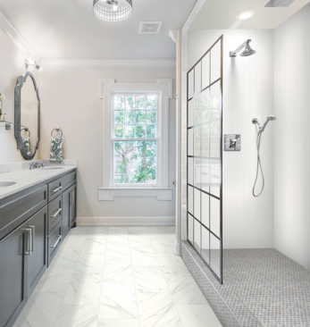 Daltile’s RevoTile is a porcelain tile floating floor system designed for fast installation. RevoTile installs in just three steps: First, place underlayment, no mortar required; second, click tiles together; and third, grout immediately. RevoTile is genuine porcelain and is available in 26 marble, wood, stone, and concrete looks. daltile.com