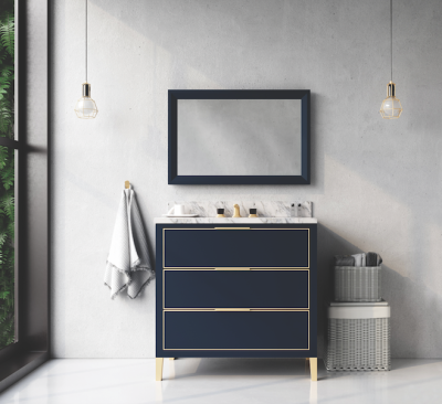 Adding color to the bathroom is one of today’s hottest design trends, and the Muse offers the perfect opportunity to do just that for your clients. Its available finishes include traditional shades like walnut brown, matte white, and matte black as well as more unexpected options like ocean grey, gloss white, and blue (shown). Satin brass trim completes the look and makes a dramatic style statement in any bathroom. The perfect finishing touch is Icera’s Carrara marble countertop with matching backsplash, both sold separately. Retail prices for the 36-inch vanity start at $1,520. For more information about the Muse Collection, visit icerausa.com.