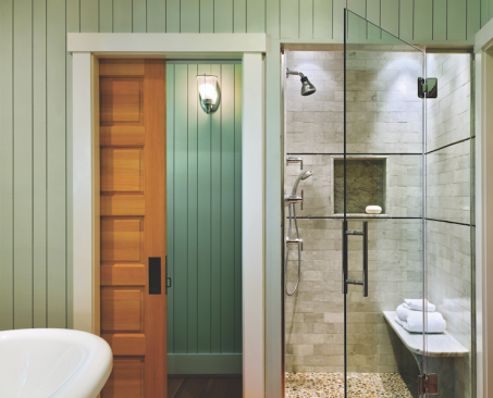 Trend Responding to the ongoing interior design trend favoring barn-style sliding doors, Simpson Door Company offers a variety of classic barn-door designs in virtually any size. In addition to a new collection of barn-door designs, any of Simpson’s doors can be mounted on barn-track hardware. Shown here is the “55 Traditional Panel” with engineered all-wood, dowel-pinned stiles and rails and ⅜-inch vertical-grain veneer flat panels. Like most Simpson doors, this door can be used as a swing door, with barn-track hardware, with pivot hardware, in a patio swing door or slider system, or in many other applications for the home’s interior or exterior. simpsondoor.com