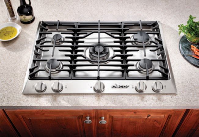 Condensed Cooktop. Dacor recently introduced a scaled-down version of its Distinctive Gas Cooktop. The new 30-inch model features the same scratch-resistant finish and high-power burners as its big (36-inch) brother. The burners are engineered to preserve the finish of the grates and automatically reignite if the flame goes out. With 54,000 Btu of total heat output from five burners, the Distinctive 30-Inch Cooktop offers the highest Btu of any similar-sized range, says the maker. It costs $1,200. Dacor, 800/793-0093, dacor.com
