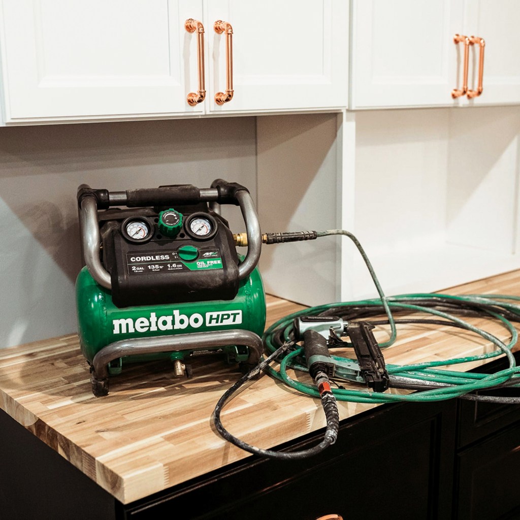 Recently, Metabo HPT sent me its new 36-volt MultiVolt 2-gallon cordless compressor (model EC36DAQ4) to test. Out of the box, this compact unit delivers 135 maximum psi, and Metabo claims that the brushless motor can easily drive more than 1,000 18-gauge brad nails on a single charge. I haven’t tested that claim, but whether or not that’s true, the compressor can be conventionally plugged into an AC outlet for all-day runtime, thanks to an available AC adapter (model ET36A) that also works with other tools in the company’s MultiVolt lineup.
