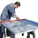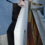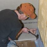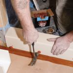 Cutting the base to size was easy. The instructions recommend scoring and snapping the base, as you would do with drywall, but with a product this costly I wanted to make sure I had a clean cut. So I cut first from the top, using a utility knife.