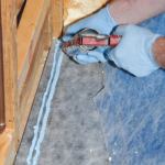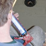 After sealing the overlap in the corner, I worked back around the perimeter with the caulk gun.