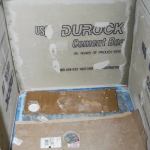 Once the mortar in the base set up, I finished the job by installing Durock cement board on the walls.