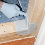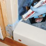 The preformed outside corners were next, two per jamb, applied directly to the wood with sealant.
