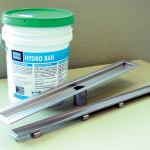 Manufactured by Laticrete International, the Hydro Ban linear drain system is available in six lengths, from 24 inches up to 60 inches. The company offers three stainless steel grate options—brushed bronze, polished bronze, and oil-rubbed bronze—in addition to a tile-top strainer option. The Hydro Ban drain body is available with a standard vertical drain outlet or with a horizontal drain outlet that exits the drain body at 90 degrees. Two or more drain bodies can be connected for applications longer than 60 inches. Connection to the waste line is by hubless connector. The drain body connects to the membrane section using Hydro Ban Waterproofing/Anti-Fracture Fabric that bridges between the setting bed and drain body. The fabric then embeds in Hydro Ban liquid membrane. The Hydro Ban drain can be installed over plywood subflooring or concrete slabs, for showers with or without a curb.