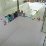 To prevent this kind of disaster, all surfaces within the shower enclosure, including benches, tub decks, or any other features a shower might include, must be completely covered.
