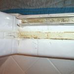 The damage that occurred in all the previous photos took years to show up. But the crack in the grout formed within an hour of the installer screwing the door track to the wall.