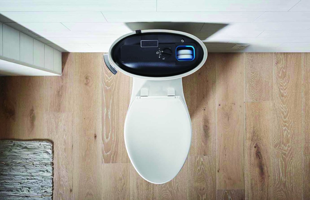 The Kohler Betello two-piece toilet is equipped with the manufacturer’s Revolution 360 flushing technology, which rinses the entire bowl surface, and ContinuousClean, which dispenses a small amount of toilet bowl tab cleaner during each flush. Kohler says the CleanCoat surface treatment repels water and dirt and prevents the formation of bacteria, mildew, and mineral deposits. The toilet is WaterSense labeled and has a separate skirted trapway that enables the same installation process as a non-skirted toilet. Pricing starts around $530. kohler.com