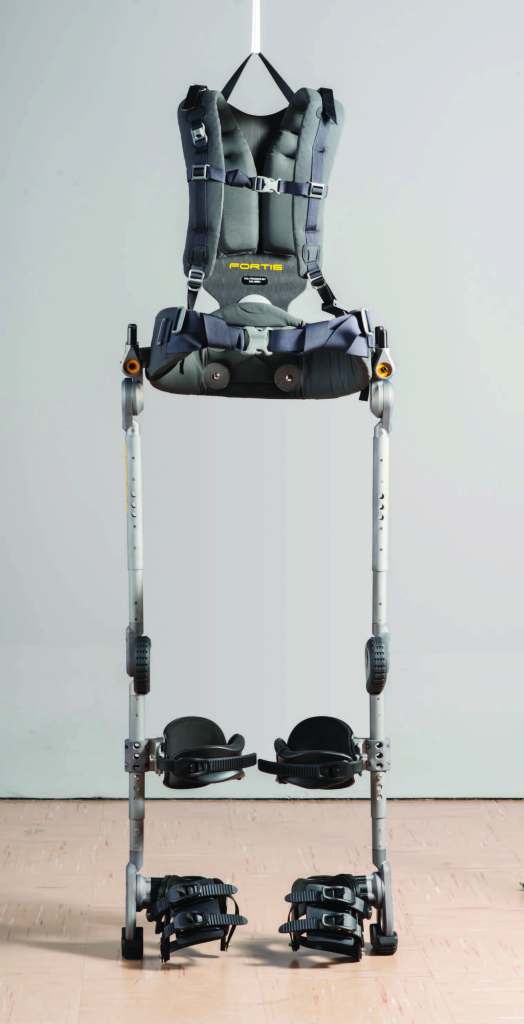 The exoskeleton, called the Fortis, is a lightweight, unpowered suit that increases the wearer’s strength and endurance by transferring the weight of heavy loads from the operator to the frame of the device.