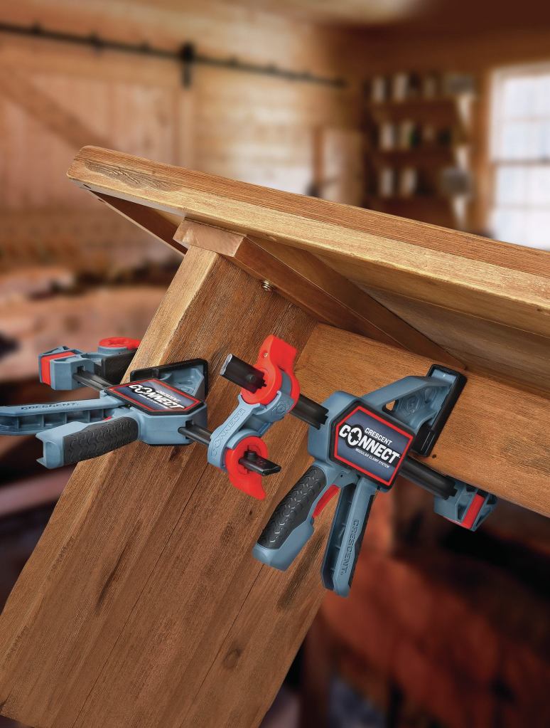 Together with the Twin Lock Connector accessory (sold separately), you can position a series of clamps in a variety of positions and at unusual angles, making it possible to clamp corners, for example, or to use one clamp to support another. (Go to the Crescent website to see photos from users showing the clamps in action in a variety of configurations.)