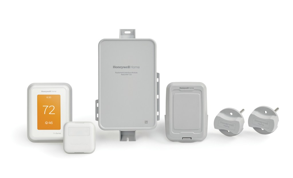 Offering control over three types of indoor air quality equipment simultaneously, the Honeywell Home T10+ Smart Thermostat Kit from Resideo Technologies includes the Honeywell Home T10+ Smart Thermostat, a floor/slab sensor, an Equipment Interface Module, a wireless, smart room sensor, a wireless outdoor sensor, and a return and supply air sensor. The EIM allows for the installation of humidification, dehumidification, and ventilation systems without running new wires. resideo.com