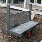 I originally built the cart with a simple plywood bed but soon replaced the plywood with a 17-1/2-inch by 60-inch by 1/8-inch-thick piece of diamond plate welded to the frame. Even though the metal deck and the stretch metal between the vertical uprights make the cart heavier, smaller items like tools or garbage cans are much less likely to fall off. To help hold materials that don’t stack nicely – like old studs or siding riddled with nails – I welded brackets to the frame to support removable 1-inch-diameter poles. At 120 pounds, the cart can be loaded into a truck by one man and can easily handle 300- to 400-pound loads, about as much as one man can push on soft ground. Altogether it took eight to 10 hours of labor and $200 in materials to build this cart, but it’s become one of our most valuable tools.