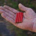 One or more paper-wrapped power cartridges—which look something like medium-size firecrackers—are then inserted into the hole, followed by the tubular section of the blasting unit, which holds the firing pin. Pushing with 10 to 15 pounds of pressure until you feel it bottom out ensures that the firing mechanism is firmly seated against the cartridges.