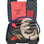 Rather than relying on a pull cord, though, the three-head version is activated by compressed air supplied to the heads through three 25-foot lengths of 1/8-inch air hose—a smaller-diameter version of the hose used to power pneumatic nailers. The individual hoses connect to a three-way quick coupler that incorporates a key-operated lockout valve. A short length of hose from the valve is coupled to an air compressor or a portable air tank.