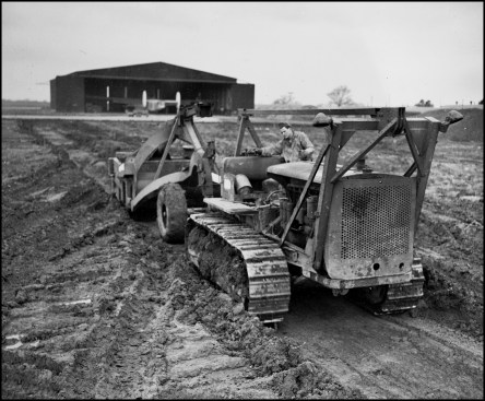Ammon notes, “Tractors derived value not only from the power of their engines but also from the versatility of their attachments. Typical attachments included bulldozer blades for pushing, winches for towing, hoists for lifting, and scrapers for hauling large amounts of earth.” In this photo, a Seabee uses a Cat D7 with a LeTourneau scraper to create an airstrip in the Pacific Theatre. During the war, R.G. LeTourneau, Inc. would develop a symbiotic relationship with Caterpillar (the conflictâs largest tractor producer) developing bulldozer blades and scrapers. All told, LeTourneau supplied 70 percent of all the ancillary heavy earthmoving equipment used by the Allied forces during World War II.