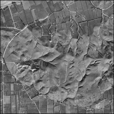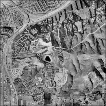 This 1946 aerial photo, coupled with the following 1972 photo of Santa Ana Canyon, illustrates the evolution of suburban clearance that took place and leveled previously undeveloped hillsides in Orange County, Calif.