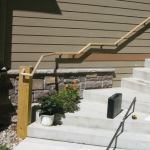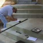 Back on site, Jeff, the shop’s installer, used a hammer drill equipped with a core bit to make holes in the steps. He was careful to stay at least 4 inches from the edge to avoid cracking the concrete during the drilling process. After dry-fitting the railing and checking for level and plumb, Jeff mixed up a small batch of Super Flow-Rock (lyonsmanu facturing.com, 214/381-8100), a rapid-setting nonmetallic hydraulic cement designed for anchoring metal to concrete. He poured it into the holes, allowed it to set up for about 20 minutes, then cleaned it up with a trowel. After 24 hours of cure time, the railing was solid.