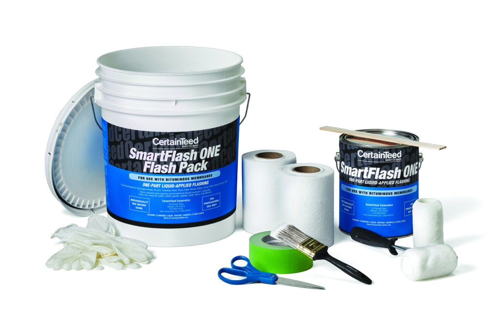 CertainTeed’s new SmartFlash One roof flashing resin is a one-component, UV-stable, fluid-applied solution for both steep- and low-slope-roof flashing details and repairs. The resin may be applied without a primer, and it can be resealed for future use. It comes in a five-gallon pail (covers 125 square feet) or a one-gallon pail (covers 25 square feet). The one-gallon pail is available on its own or as part of a Flash Pack, which includes resin, fleece, and application accessories. Contact a local distributor for pricing. certainteed.com