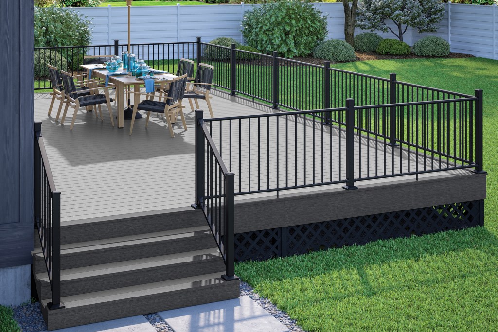 Available in 6- and 8-foot lengths and 36- and 42-inch heights in both level and stair-rail versions, Deckorators Aluminum Rapid Rail kits have a matte black, powder-coated finish that resists scratches and corrosion, according to the manufacturer. Each kit includes drop-through square balusters, two-piece base and cap rails, brackets, hardware, and installation templates. Post kits—2 1/2 inches and 4 inches—matching gates, and continuous top rail brackets are sold separately. We found a kit for a 6-foot-by-36‑inch rail section for $150 online. deckorators.com