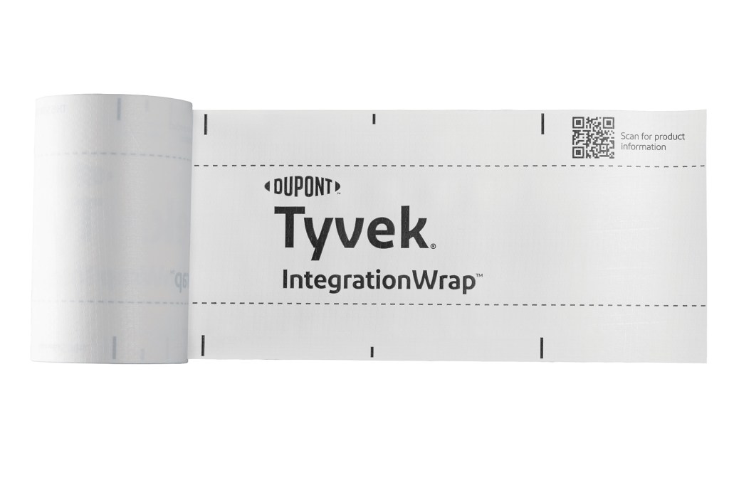 DuPont’s Tyvek IntegrationWrap is designed to integrate DuPont self-adhered window flashings with Tyvek weather-resistive barriers when the window has been installed first. Made from a coated, woven polypropylene material, the membrane incorporates additives to provide ultraviolet light resistance, though DuPont requires IntegrationWrap be covered within four months of installation. Maximum in-service temperature, according to the manufacturer, is 180°F. dupont.com