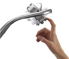 Kohler’s Flipside hand shower offers four distinct spray patterns. To select a pattern, the user simply pivots the head into position; each spray uses a separate nozzle. Sold in three handle styles with a brushed nickel or polished chrome finish, the shower starts at around $80. Kohler, 800/456-4537, kohler.com.