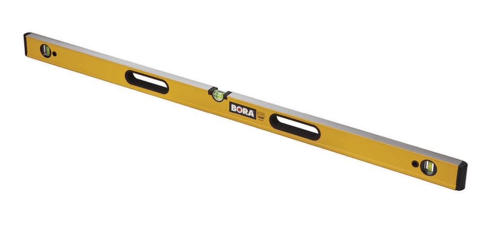 Tough Levels. Though best-known for clamps and layout tools, Bora also makes a full line of spirit levels, which it says can take anything the job site dishes out. Each of the nine levels is made from structural aircraft-grade steel, with pliable internal reinforcement bars and scratch-resistant acrylic vials. All come with a lifetime precision guarantee. Users of a certain age will appreciate the magnified center vial. Sizes range from 16 inches ($90) to 96 inches ($270). Affinity Tool Works, 866/588-0395, affinitytool.com/bora