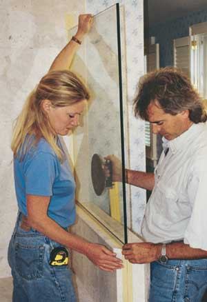 The job begins with the design. Kathy consults with the homeowner, the builder, and anyone else who may have input into the appearance of the final product. Our hardware supplier, C.R. Laurence (2503 E. Vernon Ave., Los Angeles, CA 90058; 800/421-6144; ), provides us with worksheet forms on which Kathy records the thickness of the glass, the style and finish of the hardware, the handle and towel bar selection, the width of the door, and which edge seals will be used. Matching the finish of the enclosure hardware to faucets and towel bars has a definite effect on the quote — brushed or polished nickel and antique gold finishes have been major factors behind some of our most expensive units.
