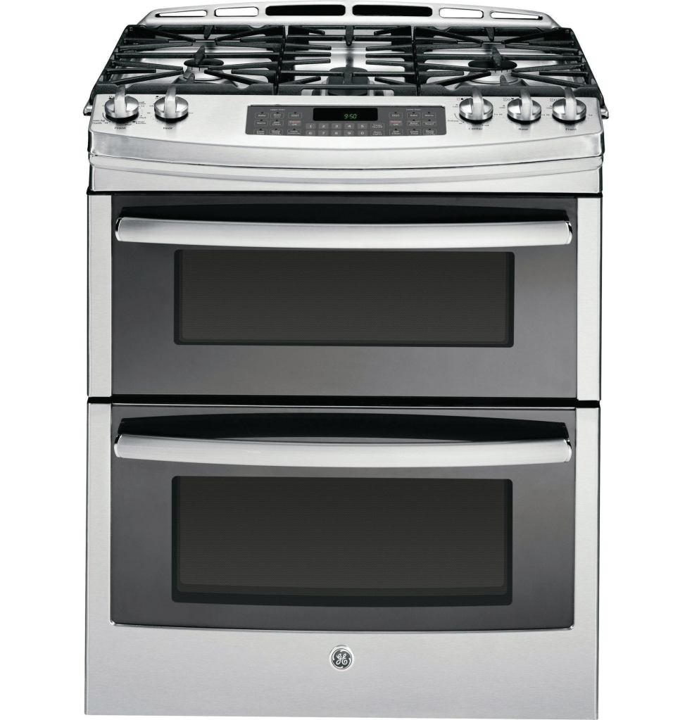 Double-oven electric ranges have been around for a while, but GE claims its Slide-In Double Oven Gas Range is the first one available in gas. Controls are on the front; unfinished sides and side tabs that fit over the top of the counter create a built-in look and eliminate the gap between range and counter. The range top includes a built-in griddle and a 20,000 Btu burner. MSRP is $3,300. GE Appliances, 800.626.2005, geappliances.com