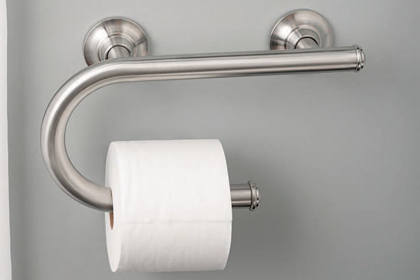Moen’s Toilet Paper Grab Bar looks like any stylish bathroom accessory and features a curved design that makes it easy to replace the paper. But should anybody need a little help, its extra-long arm can support a 250-pound load. The fitting is part of a new line dubbed Grab Bars With Integrated Accessories, which also contains a towel bar and a bath shelf; all feature a brushed nickel finish and come with heavy-duty anchors so you can mount them even where there isn’t a stud. The toilet-paper bar costs about $60. Moen, 800/289-6636, moen.com/homecare.