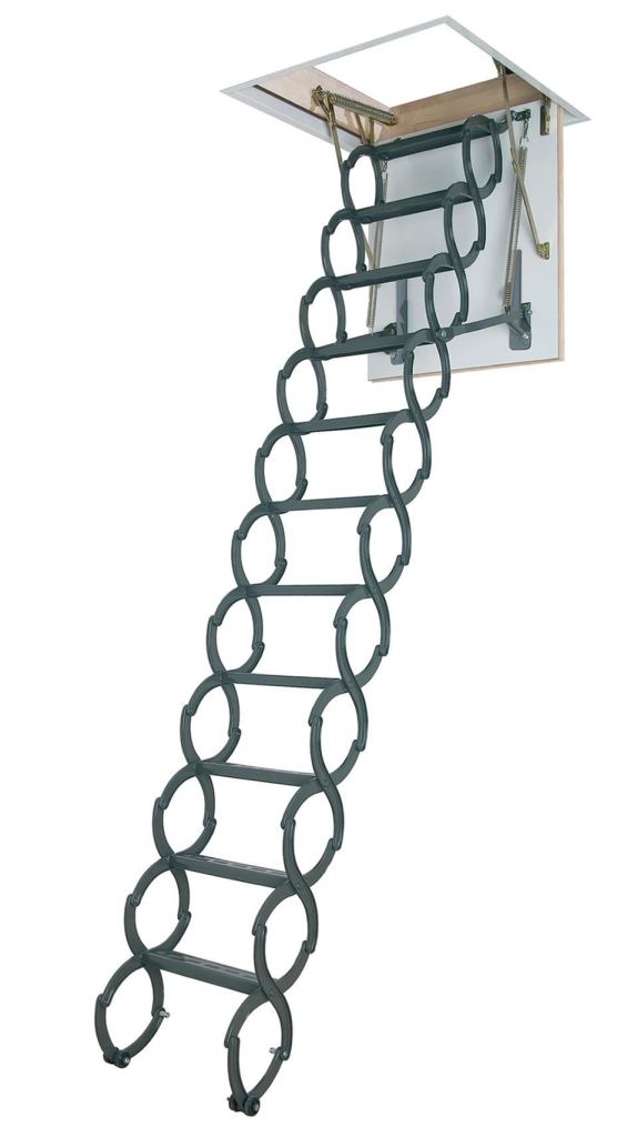 Homeowners who need frequent access to their storage space might appreciate the LST Metal Scissors attic ladder. It can support up to 300 pounds, the maker says, and comes in six sizes to fit rough openings from 22 by 31 inches to 25 by 54 inches and ceilings up to 10 feet 10 inches. All units include a 13/8-inch-thick rubber-gasketed insulated door that delivers a 5.2 R-value. Prices range from $600 to $780. A fire-rated version is also available.