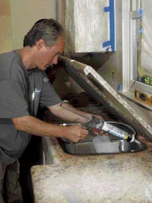 It’s easy to cut openings for drop-in sinks because the flange hides the edge. It takes more work to finish the opening for an undermount sink. Even so, undermount sinks are the norm with slab stone counters.