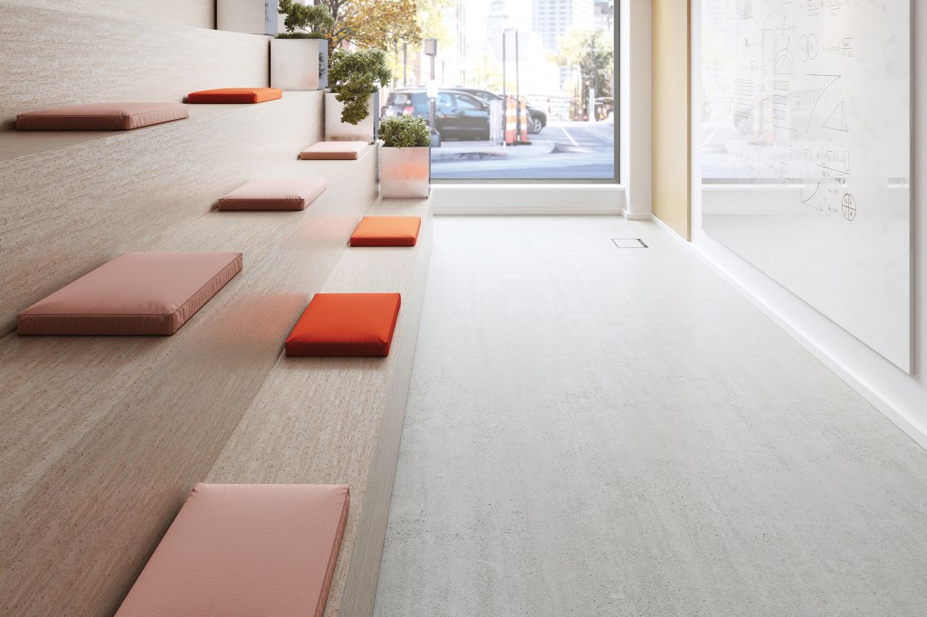 The antibacterial, mold- and mildew-resistant, nonporous, and low-VOC solid surfaces in the Balanced Collection by Durasein are fabricated with two-thirds alumina trihydrate and one-third acrylic resins and pigments to form a dense, stone-like material that can be cut with standard woodworking tools, as well as thermoformed. It’s available in four palette options, including gray-brown mixed naturale (pictured). Pricing varies but is approximately $430 per 1/2-inch-by-30‑inch-by-144-inch sheet. durasein.com