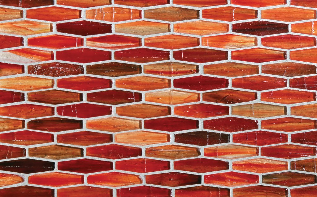 Add a bold accent to backsplashes, powder rooms, shower walls, and more with Lunada Bay Tile’s new Marrakech Red selections. Part of the Tozen glass tile collection, the translucent red glass tiles recall the exotic spices, vivd fabrics, and tiled roofs of their Moroccan namesake. Choose from “Martini” elongated hexagons (shown), 1/2-by-1-inch mini bricks, and 1/2-by-4-inch or 1-by-4 inch bricks in natural or silk finishes. Tozen glass tiles are designed to be durable and easy to maintain, and contain 70% post-consumer recycled glass. Check with the maker for pricing. lunadabaytile.com