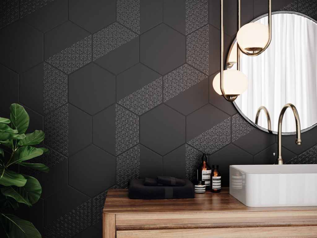 In response to consumer trends, Emser Tile unveiled several new collections of porcelain, stone, ceramic, and mosaic products for 2020. Among them are bold-patterned “statement piece” collections, including Rhythm, a black glazed porcelain hexagon tile (pictured); Link, a chevron stone groutless mosaic; and Splash, a blue glass mosaic. The manufacturer also debuted collections of textured tiles and of porcelain tiles that mimic natural surfaces. Contact a local distributor for pricing. emser.com