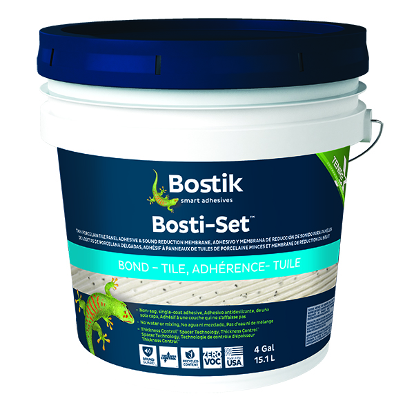 Bostik’s new Bosti-Set adhesive is designed for use with thin porcelain tile panels and claims to reduce installation time. According to the company, the adhesive and sound-reduction membrane instantly grabs and holds panels with just one coat and allows panels to be repositioned for up to 30 minutes with no slip or sag. Recycled rubber particles mixed into the lightweight, VOCfree adhesive reportedly provide sound abatement. Pricing has not been announced. bostik.com