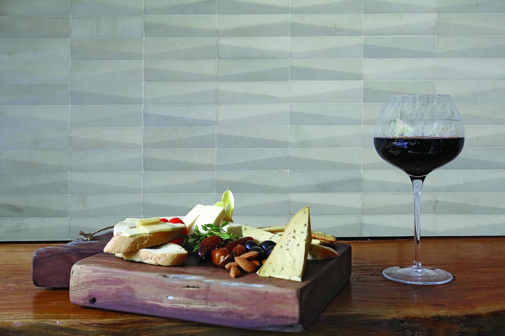 Sculpted with an angled surface that creates shadows, the tiles in Island Stone’s Dunes series form a pattern when installed that is meant to evoke wind-swept sand dunes. Each 7 1/2-by-11 3/4- inch tile measures from 1/4 to 5/8 inch thick and is available in four colors: crystal white, typhoon grey, sandstone mint, or sandstone ocean. The tumbled natural stone is ideally installed with grout but can be installed dry stacked, the manufacturer says. Pricing was unavailable. islandstone.com