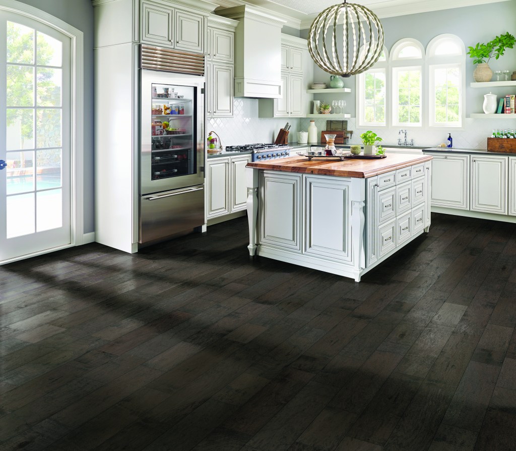 Made from North American hickory, Next Frontier engineered-hardwood flooring from Bruce updates a traditional favorite with wider-width planks, a matte finish, a hand-scraped texture, and 10 new color options. Pricing ranges from $4 to $6 per square foot. Other new engineered-hardwood collections from Bruce include American Honor (oak), Early Canterbury (maple), and Blacksmith’s Forge (birch). According to the manufacturer, planks for all four styles can be stapled, floated, or glued down. bruce.com