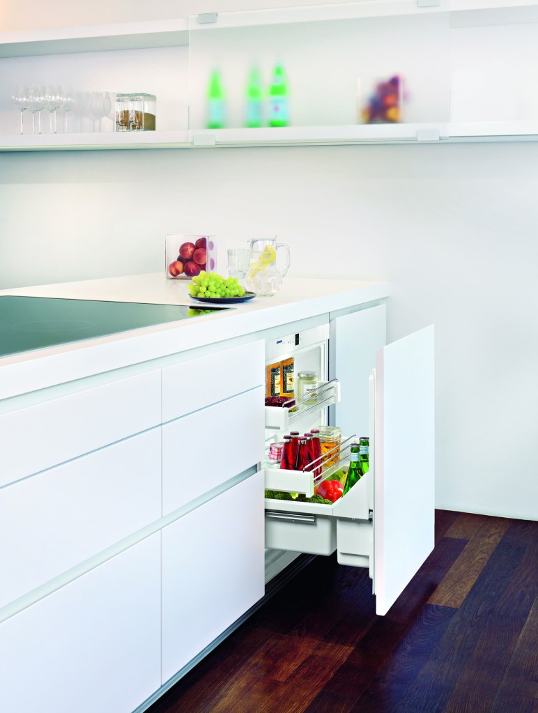 The UPR 503 under-counter pull-out refrigerator from Liebherr packs a lot of fridge space into a small footprint when kitchen space is tight. The fridge fits cabinets 34 inches high and is adjustable within 2 inches to fit counter heights and depths. The Energy Star–rated drawer offers self-retraction and soft-close, and features adjustable, scratch-resistant shelves, LED lighting, and touch-screen temperature controls. We found the refrigerator online for $2,140. liebherr.com