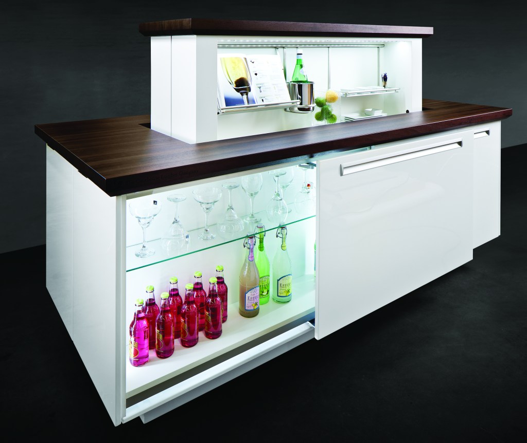 Traditional cabinet doors that swing open can take up a lot of space, something that not all kitchens have available. Hafele’s Frontino coplanar door hardware (shown) slides open, providing full access to everything in the cabinet without taking up any extra space while open. The hardware is available for both upper and base cabinets, and has integrated soft-open and soft-close for doors up to 88 pounds each. The company also offers a line of cabinetry that can be lifted, tilted, swiveled, or folded above the user in smaller kitchens; some versions come with a touch-to-open feature. Pricing varies. hafele.com
