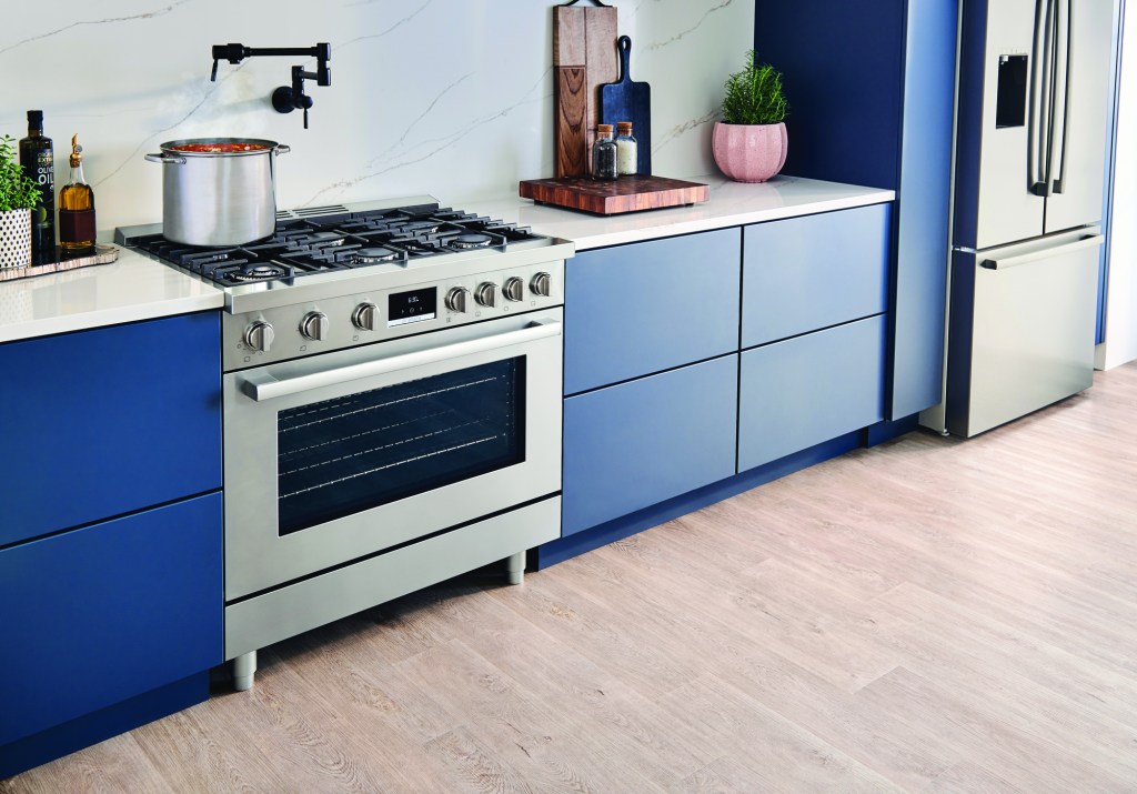 Bosch has introduced a series of industrial-style ranges and rangetops to its 800 Series line. They are available in 30-inch and 36-inch sizes, with a stainless steel finish or black stainless steel option for ranges. Both products sport industrial touches—including die-cast metal, continuous cast iron grates, and pedestal feet—and both feature the Bosch Dual-Flame ring burner, which uses two flame rings to deliver a wide range of temperature control. The cooktops range from four to six burners, depending on model and size. The new collection will be available mid-year 2020. bosch.us