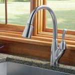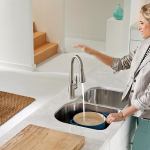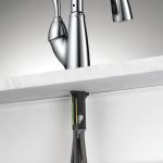 Pull-down and pull-out faucets are becoming the new standard for kitchens because their built-in multifunctional heads eliminate the need for a separate side-spray and make it easy to fill large pots. Delta’s Allora pull-down faucet features the new EZ Anchor mounting assembly, which allows you to install the faucet from up top using the included EZ Bar and a screwdriver. (You still have to connect the lines underneath, but at least you don’t have to lie on your back inside the cabinet.) The faucet comes with a chrome or stainless finish and costs $410 or $550.