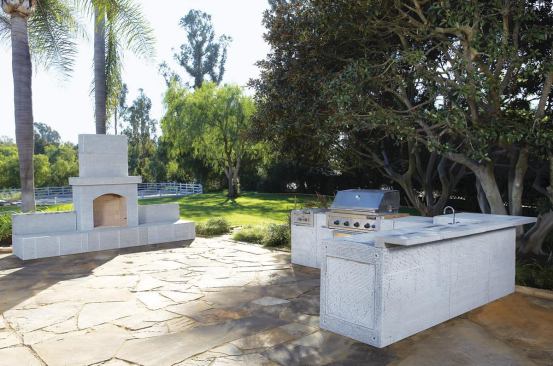 Eldorado Stone says it offers a faster and easier way to build masonry outdoor kitchens. Eldorado Outdoor is a collection of modular units that assemble quickly into the kitchen’s basic shape and accept Eldorado or other manufactured stone or brick. The units are made of lightweight glass-fiber reinforced concrete that can be cut out on site to accommodate appliances and fixtures. The collection also includes sitting walls, fireplaces, and a fire pit. You can design your own configuration using the company’s website. The modular components for the project shown cost about $5,400.