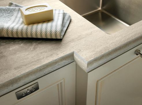 The Wilsonart HD brand of decorative laminates now includes more than 50 realistic surfaces, including 14 new ones inspired by Mediterranean and South African natural stone. The maker just unveiled two new edges — the Cascade and the Crescent — for a thick, seamless appearance. Integrated sinks are also available. The countertops and new edges cost about $31 per square foot installed, and an integrated sink adds about $400.
