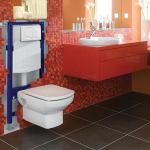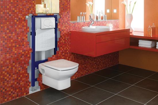 If you need to fit a toilet into a tight space, consider a wall-hung model. Its tank and carrier frame fit inside the wall, saving about 9 inches of floor space (compared to a standard floor-mounted toilet). Geberit’s concealed tanks and carrier frames have standard plumbing connections, fit into 2×4 or 2×6 walls, work with wall-hung toilets made by a variety of manufacturers, and allow you to set the seat at 15 to 19 inches high. Actuator flush plates provide push-button flushing and tool-free access to all working parts. The tank-and-carrier units cost $500 to $630, and the actuator flush panels $80 to $540. Wall-hung toilets typically cost $300 to $800 (though some cost over $3,000).
