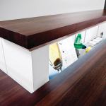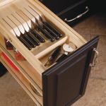 According to Hafele, 80 percent of all base cabinets have a drawer over the door, yet 80 percent of the accessories made for these cabinets require a full-height door. Hafele’s new SmartCab pullout fits into 15-inch or 18-inch base cabinets that have a drawer above the door, and it can be customized using interchangeable “Apps” like trays, a knife block, and a roll manager. The pullout mounts to the base cabinet with four screws and includes soft-close runners. It can be installed behind a hinged door, or the door can be attached to the front of the pullout. The pullout sells for $290, and the Apps sell for $20 to $130.